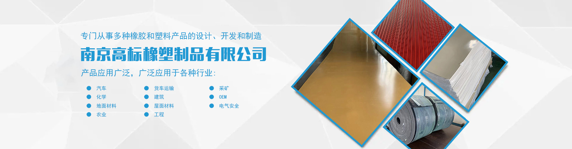 南京高標(biāo)橡塑制品有限公司是一家專(zhuān)業(yè)的橡膠板、橡膠制品和熱塑性塑料產(chǎn)品的制造商。主營(yíng)產(chǎn)品:三元乙丙橡膠板,丁腈橡膠版,氯丁橡膠板,丁苯橡膠板,丁基橡膠板,天然橡膠板,硅橡膠板,氟橡膠板,絕緣,防靜電,導(dǎo)電橡膠板,夾布,夾金屬網(wǎng)橡膠板,耐酸堿橡膠板,耐油橡膠板,耐磨橡膠板,阻燃橡膠板,阻尼橡膠板,減震橡膠板,防滑橡膠板,橡膠墊片等。 高標(biāo)橡塑專(zhuān)門(mén)從事多種橡膠和塑料產(chǎn)品的設(shè)計(jì)、開(kāi)發(fā)和制造。我們的產(chǎn)品應(yīng)用廣泛。廣泛應(yīng)用于各種行業(yè),包括:汽車(chē),貨車(chē)運(yùn)輸,采礦,化學(xué),建筑,OEM,地面材料,屋面材料,電氣安全,農(nóng)業(yè),工程等。 高標(biāo)橡塑的客戶服務(wù)于許多行業(yè),包括墊片切割、分銷(xiāo)商、工業(yè)用品零售商和批發(fā)商。自